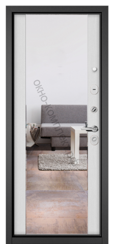 Стальная дверь "Мастино" Trust Eco. Графит букле / Зеркало дуб белый скандинавский