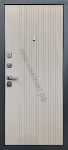 Стальная дверь СТРАЖ 3K Люкс 06 в цвете внешней панели Колоре гриджио и внутренней МДФ панели цвета Стронг сливки с 3-мя контурами уплотнения для необходимой защиты Вашей квартиры от посторонних шумов и запахов, внутреннее наполнение с применением минеральной плиты Knauf надежно уберегут Вас от проникновения холода. Замочные карманы с механизмами 4 класса взломостойкости